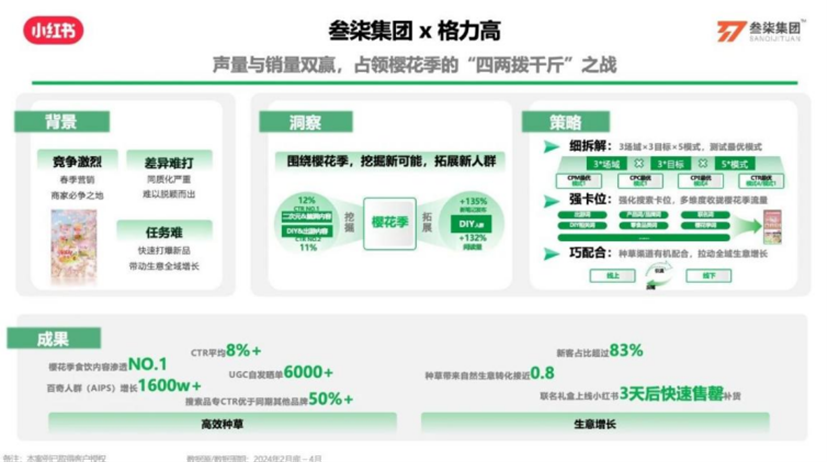 食品飲料行業:助力格力高在櫻花季營銷中,實現食飲內容滲透NO.1,新客占比超83%,聯名禮盒3天售罄。
