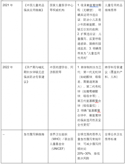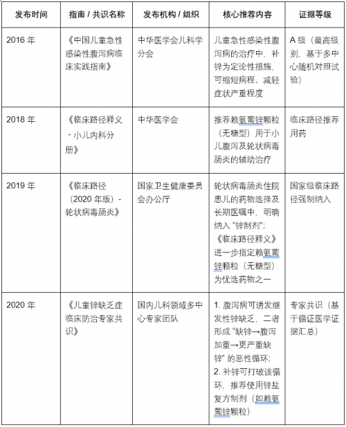 近年來,國內外多部權威指南、共識均對兒童補鋅的必要性及藥物選擇提出明確建議,證據等級及推薦內容如下: