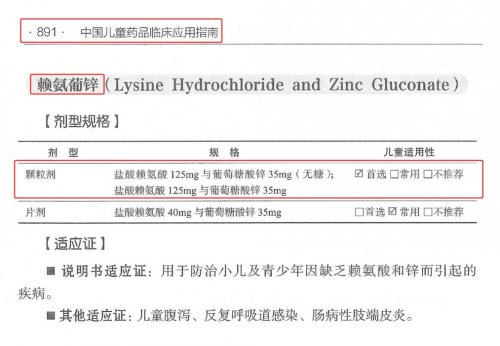 • 說明書適應證:防治小兒及青少年因賴氨酸、鋅缺乏引發的疾病(如生長發育遲緩、厭食