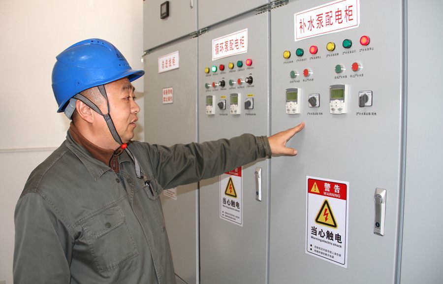 程義斌介紹換熱站PLC控制柜運轉情況