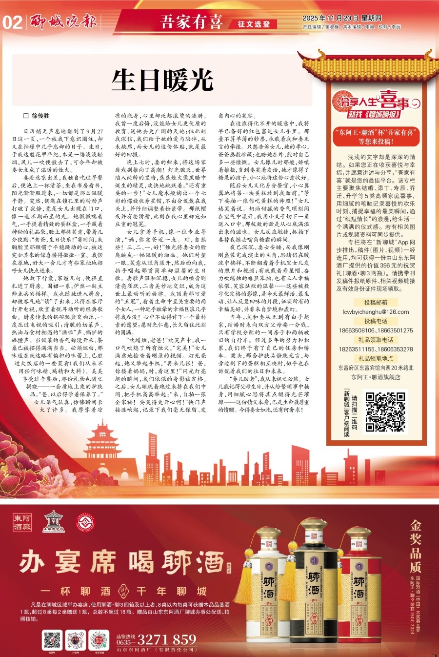 專欄將在“新聊城”App同步推出,稿件(圖片、視頻)一經選用,均可獲得一份由山東東阿酒廠提供的價值396元的祝賀禮(聊酒·聊3兩瓶)。請攜帶刊發稿件報紙原件、相關視頻鏈接及有效身份證件現場領取。